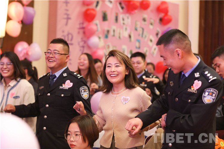 活動過程中,總站形象宣傳片《我是誰》,向女嘉賓們展現(xiàn)了西藏移民管理警察的職業(yè)特點,使女嘉賓對民警工作職責產(chǎn)生了初步的認識。在主持人的引導下,精彩的才藝展示和豐富的游戲環(huán)節(jié)很快將現(xiàn)場氣氛推向一個接一個的高潮?;佑螒颉盃渴譅繍邸薄靶挠徐`犀”“守護愛情”“唯愛接力”通過聆聽詩句抓緊手指、借助比劃你問我答,相互協(xié)助完成任務等方式增進了男女嘉賓之間的了解和默契,促進了相互之間更好交流。男女嘉賓才藝表演和日喀則邊境管理支隊1753樂隊送上的精彩曲目,令活動現(xiàn)場青春洋溢。最終,18對男女嘉賓互生情愫,牽手成功,36對交換聯(lián)系方式,開啟更加深入的幸福交流。