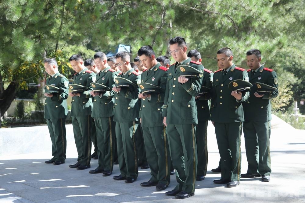 圖為武警第二機(jī)動總隊某支隊向革命烈士默哀致敬