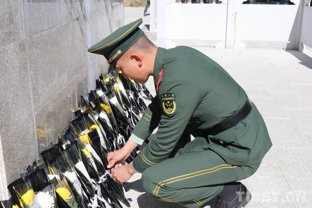 圖為武警第二機(jī)動總隊某支隊向革命烈士敬獻(xiàn)鮮花