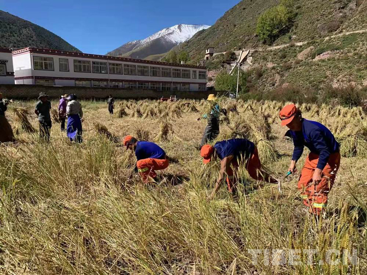 中國西藏網(wǎng)訊 農(nóng)諺說:“夏忙半個(gè)月,秋忙四十天?!鼻锸諏r(nóng)民來說至關(guān)重要,盼了一年的勞動成果,終于要?dú)w倉了。近日,為了幫助西藏自治區(qū)昌都市左貢縣田妥鎮(zhèn)亞中村群眾及時(shí)收割地里熟透了的青稞,昌都市左貢縣森林消防中隊(duì)指戰(zhàn)員們放棄休息時(shí)間,走進(jìn)田間,與鄉(xiāng)親們一起打響糧食搶收保衛(wèi)戰(zhàn),確保地里的青稞全部歸倉。