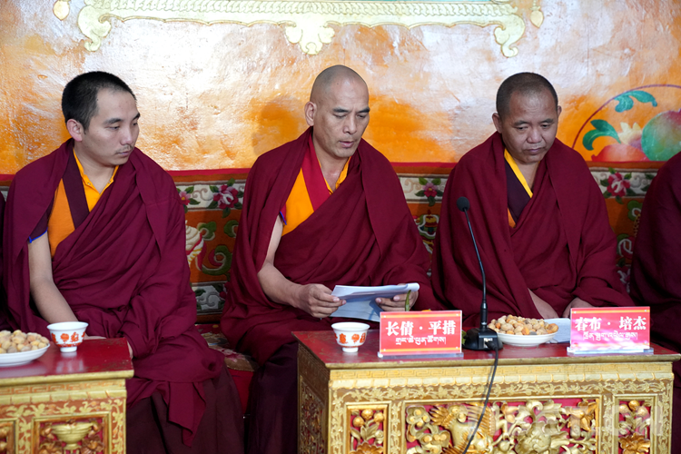 張延清說(shuō),今年,在中國(guó)共產(chǎn)黨成立100周年,西藏和平解放70周年之際,習(xí)近平總書記作為中共中央總書記、國(guó)家主席、中央軍委主席到西藏慶祝西藏和平解放,在黨和國(guó)家歷史上是第一次,充分體現(xiàn)了以習(xí)近平同志為核心的黨中央對(duì)邊疆地區(qū)的深情牽掛、對(duì)西藏工作的高度重視、對(duì)西藏各族干部群眾的深厚感情。7月22日下午,習(xí)近平總書記來(lái)到建寺600多年的哲蚌寺,受到了全寺僧人最高禮遇的迎接。習(xí)近平總書記充分肯定了哲蚌寺在擁護(hù)中國(guó)共產(chǎn)黨、擁護(hù)社會(huì)主義制度、維護(hù)祖國(guó)統(tǒng)一等方面做出的積極貢獻(xiàn),并關(guān)心詢問(wèn)僧人身體狀況特別是老年僧人健康問(wèn)題,在場(chǎng)的僧人都很感動(dòng)??v觀世界,國(guó)家領(lǐng)導(dǎo)人如此高度重視宗教工作、如此深情關(guān)懷宗教界人士,唯有中國(guó)、唯有中國(guó)共產(chǎn)黨的領(lǐng)導(dǎo)人。知恩、念恩、感恩、報(bào)恩是菩提心的根本。各位僧人朋友們一定要按照習(xí)近平總書記的指示精神,守法敬業(yè)、愛(ài)國(guó)愛(ài)教、潛心修行、向善為民、利益眾生,真正做慈悲為懷的真佛子。