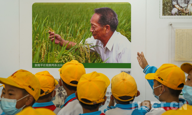 一張張照片中,一位正在觀察水稻的老人學(xué)生們幾乎都認(rèn)識?!拔抑涝∑綘敔?,是他讓人們不再餓肚子?!薄半m然現(xiàn)在糧食產(chǎn)量增加了,但我們還是要記住不能浪費糧食?!?學(xué)生們你一言我一語爭相發(fā)言。