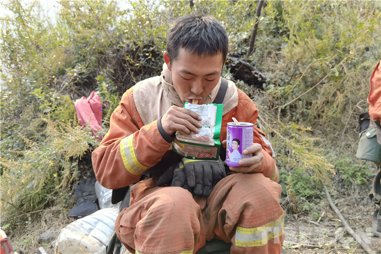 連日來,在火場上,席地而睡的消防員和寧吃干糧不拿群眾“一針一線”的消防員隨處可見。(中國西藏網 通訊員/張強 夏明勇)