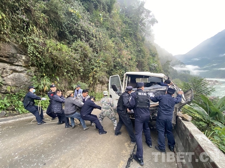 最終,經(jīng)過2個(gè)小時(shí)的救援,受困駕駛員被成功救出。在進(jìn)行了簡(jiǎn)單的包扎后,將其送往墨脫縣醫(yī)院進(jìn)行進(jìn)一步救治。