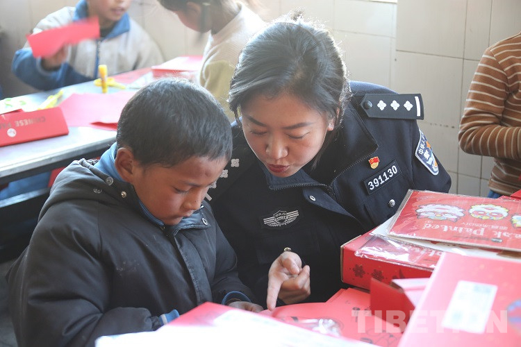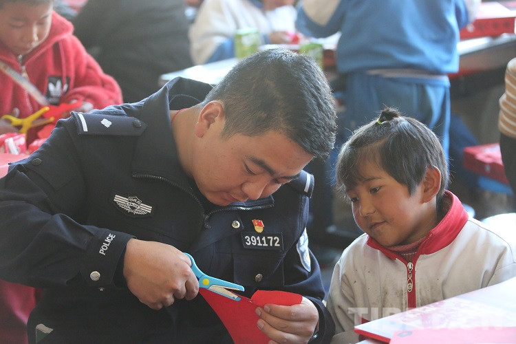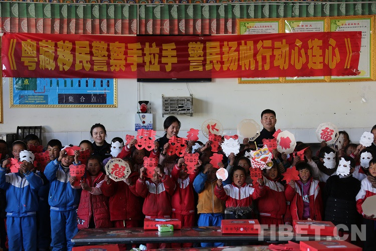 隨后,民警們?yōu)橥瑢W(xué)們發(fā)放了拉薩邊檢站和東莞邊檢站共同準(zhǔn)備的兒童手工DIY禮盒,并和同學(xué)們一起完成剪紙手工制作,共同感受著中華傳統(tǒng)文化美學(xué),體驗(yàn)手工制作的樂(lè)趣?,F(xiàn)場(chǎng)歡聲笑語(yǔ),其樂(lè)融融。