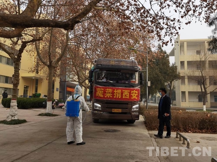 這是由河南南陽社區(qū)志愿者協(xié)會(huì)組織的馳援陜西的大卡車,兩位志愿者協(xié)會(huì)成員于2022年1月4日晚11時(shí)30分出發(fā),驅(qū)車千里一夜未眠,只為第一時(shí)間把新鮮蔬菜送到學(xué)校,助力抗疫。1月5日上午11時(shí),在西藏民族大學(xué)第一餐廳廣場(chǎng)前,舉行了捐贈(zèng)儀式。