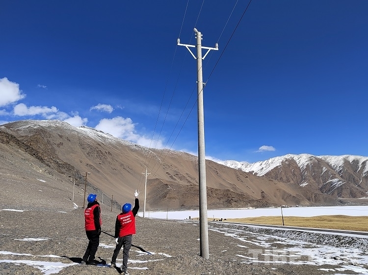 圖為國網(wǎng)西藏阿里公司變電中心人員對(duì)阿里巴獅線開展巡視巡檢工作 攝影:次旦多吉