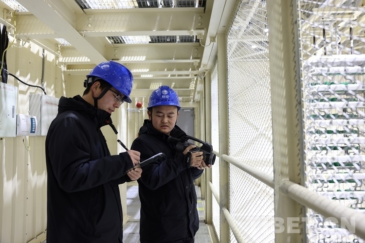 圖為拉薩換流站工作人員正在測溫 攝影:閆昱翰
