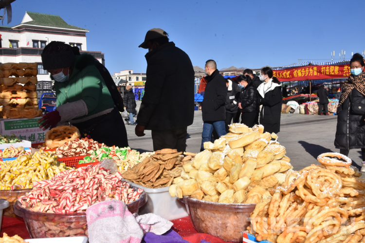 中國(guó)西藏網(wǎng)訊 近日,在西藏自治區(qū)日喀則市區(qū)最大的年貨集市,價(jià)格實(shí)惠、種類(lèi)豐富的商品吸引了眾多市民前來(lái)置辦年貨。過(guò)年用的土特產(chǎn)青裸穗、奶制品、民族手工藝品扎木念琴、精美的糌粑盒、調(diào)料盒等賣(mài)得紅火。