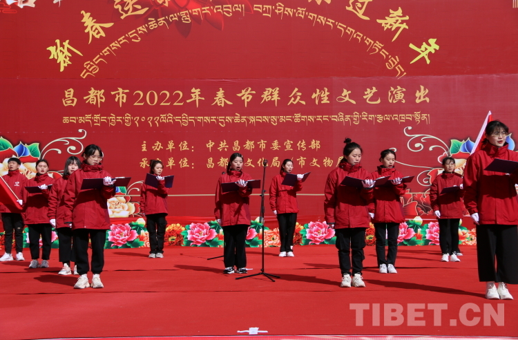 在整個表演過程中,有一抹中國紅在舞臺上令人感動。由17名昌都市西部計劃志愿者表演的詩歌朗誦《一份愛,寫給昌都;一段情,讀給昌都》,聲音洪亮、感情豐富,引起了在場很多外鄉(xiāng)人的共鳴!昌都市西部計劃志愿者王雙艷說,“我來自河南新鄉(xiāng),今年雖然過年不回家,通過表演詩歌朗誦,真切地表達了我們不遠千里奔赴昌都,服務(wù)昌都的堅定信念,現(xiàn)場觀眾的熱烈掌聲也讓我感受到了虎年新春的濃濃熱情!”