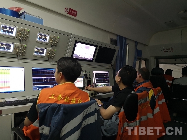 進入拉林鐵路前,機組人員對鋼軌探傷車檢測裝置、走行及制動系統(tǒng)進行了細致的檢查,對探傷系統(tǒng)及參數(shù)等進行調(diào)試。探傷車前端,兩名司機緊盯前方,負責(zé)運行;探傷操作臺前,副隊長張全福及4名探傷人員不斷調(diào)整相關(guān)參數(shù),連續(xù)6個小時對檢測過的鋼軌數(shù)據(jù)進行認真盯控,通過數(shù)據(jù)變化判斷鋼軌是否存在傷損。
