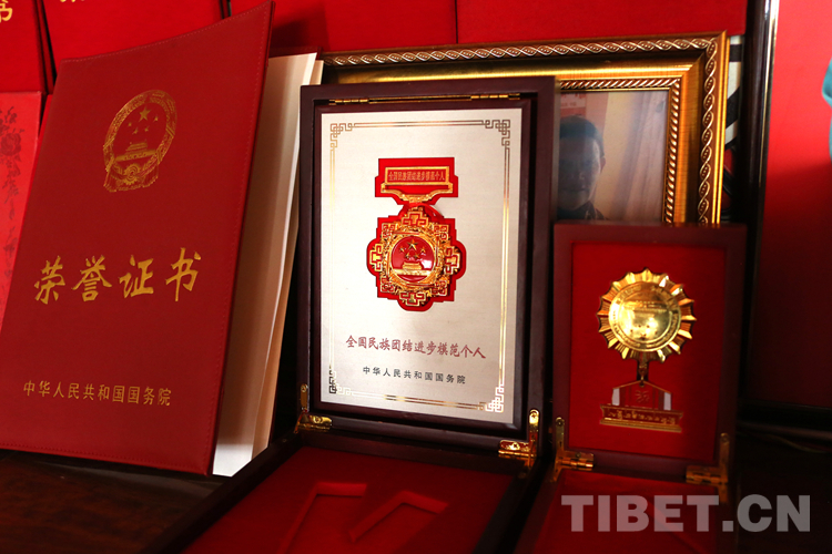 圖為楊桂房家中擺放的全國民族團結(jié)進步模范個人榮譽證書和獎?wù)?攝影:王佳豪