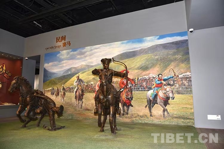 圖為西藏博物館《離太陽最近的人——西藏民俗文化展》展現(xiàn)的民間賽馬藝術 攝影:王媛媛