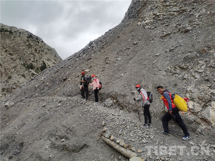我雖然沒去成,但年輕的同事索德代表駐村工作隊,懷著激動的心情上了山。她的主要任務(wù)是巡診急救,宣傳衛(wèi)生、防疫、環(huán)保等知識。這次上山給她留下了深刻的印象。她和村民們跋山涉水徒步前行,背著約20公斤的行囊拄著拐杖徒步14個小時,來到了海拔4800米的寧村蟲草采挖區(qū)域。這一路對于不擅走山路的城里姑娘索德來說,確實是個挑戰(zhàn),尤其是雨后泥濘的道路更是難走,不知道她摔了多少跤。她說,有一段山路就在峭壁上,放眼望下去是不見底的深淵,稍有不慎就可能摔下去粉身碎骨,嚇得她腿腳發(fā)抖發(fā)軟不敢邁步,還是靠有經(jīng)驗的多吉村長把她拽著攙著過去的。就這樣磕磕絆絆地走著摔著,摔著走著,每次摔倒她都有一種委屈和挫敗感涌上心頭,眼睛不時就濕潤了,強(qiáng)忍著不讓眼淚掉下來。最終,在隊友們的關(guān)心和鼓勵下,繼續(xù)前行趕路,索德戰(zhàn)勝了一路的挑戰(zhàn)。