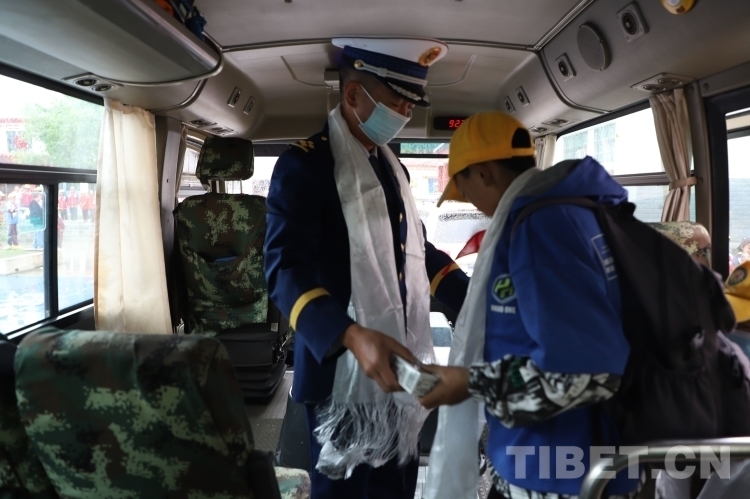 圖為校方為森林消防隊(duì)員獻(xiàn)上哈達(dá)