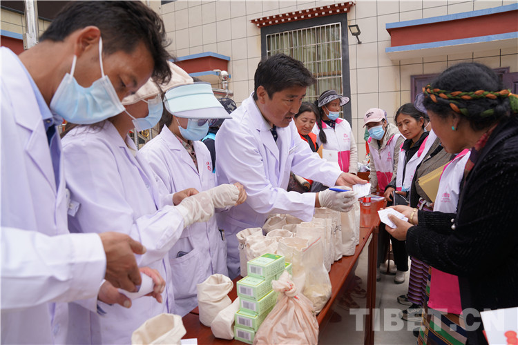 義診中,瓊結(jié)縣衛(wèi)健委(藏醫(yī)醫(yī)院)醫(yī)療健康志愿隊(duì)耐心接待每位前來咨詢的農(nóng)牧民群眾,悉心為農(nóng)牧民群眾診斷病情。