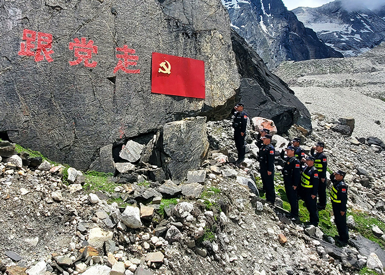 “我志愿加入中國(guó)共產(chǎn)黨,擁護(hù)黨的綱領(lǐng),遵守黨的章程......”。邊巴邊境派出所民警在深入一線巡邏踏查間隙,面向黨旗肅然站立,高舉右拳莊嚴(yán)宣誓,表達(dá)為黨的事業(yè)奮斗終身的初心,更加堅(jiān)定聽(tīng)黨話、跟黨走的理想信念。