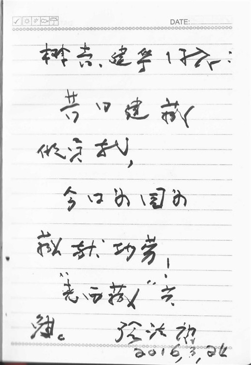 老將軍寬慰一笑,接過筆記本,問了問我愛人任建華的名字,就回自己的臥室兼工作室去了。