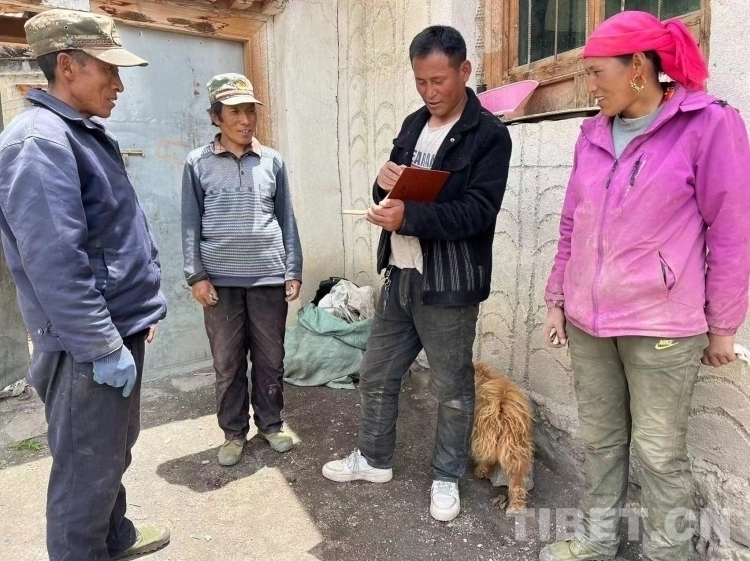 圖為在村民家中走訪的多吉主任(右二)