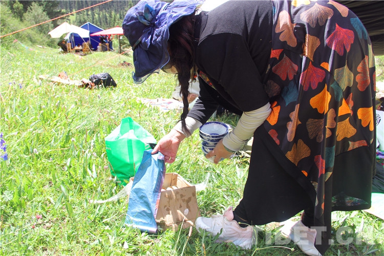 圖為2022年伊日鄉(xiāng)第二屆文化旅游藝術(shù)節(jié)上群眾離開前將垃圾集中整理 攝影:王茜