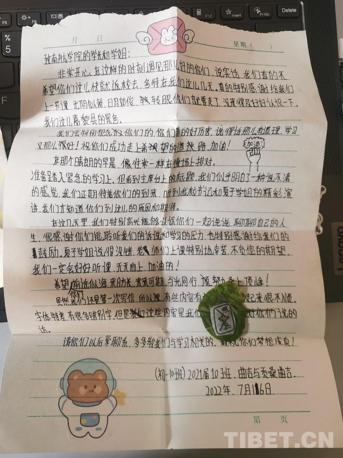 此次嘉黎之行,讓我真切地感受到了西藏同胞的純樸、熱情、善良。孩子們課堂上的認真思考、仔細演算、積極回答都給我們留下了深刻的印象。我們一起過林卡,一起吃飯,到家里做客……無數的言行舉止之間都流露出他們的講禮貌、重禮儀。我們也結識了為這片熱土奉獻多年青春的公安政委、校長、書記等等,正是他們的無私付出,讓雪域高原欣欣向榮,富強美麗。未來,我們也將與嘉黎縣中學建立長期的合作,號召更多南航學子為當地帶去希望之光!