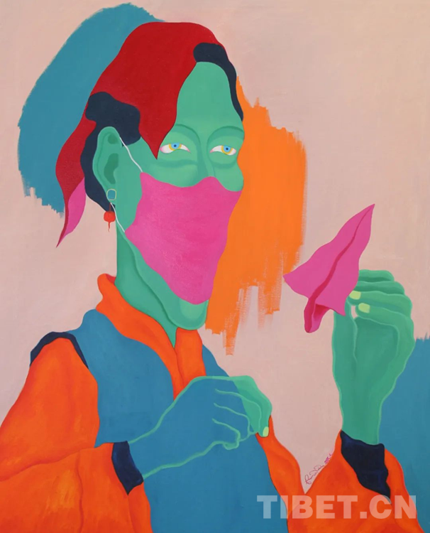 圖為作品《禁止病魔肆虐》 作者:格桑次仁