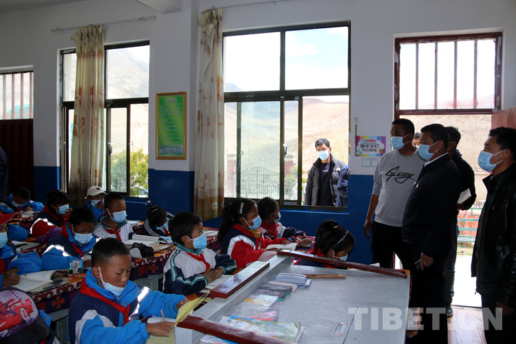 圖為次仁頓珠在白朗縣轄區(qū)某小學視察教學工作、慰問學校師生