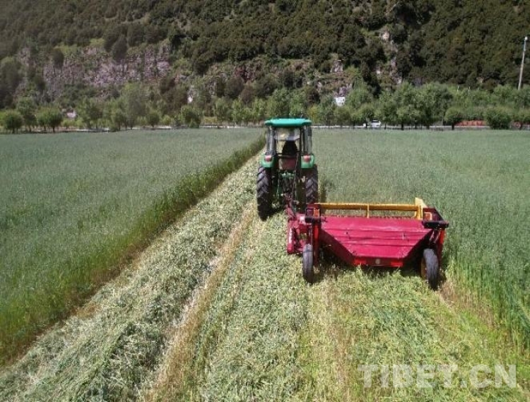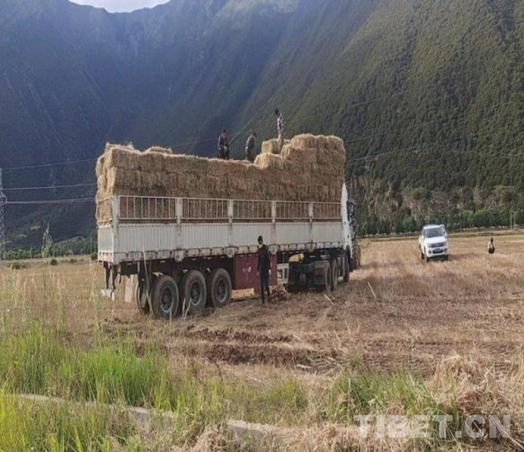 圖為國家牧草產(chǎn)業(yè)技術體系拉薩綜合試驗站工布江達縣示范點秋收搶收(海拔3990米)