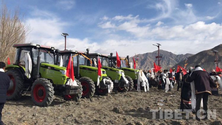 圖為西藏農(nóng)民開耕儀式上的機械化工具 攝影:拉加當(dāng)周