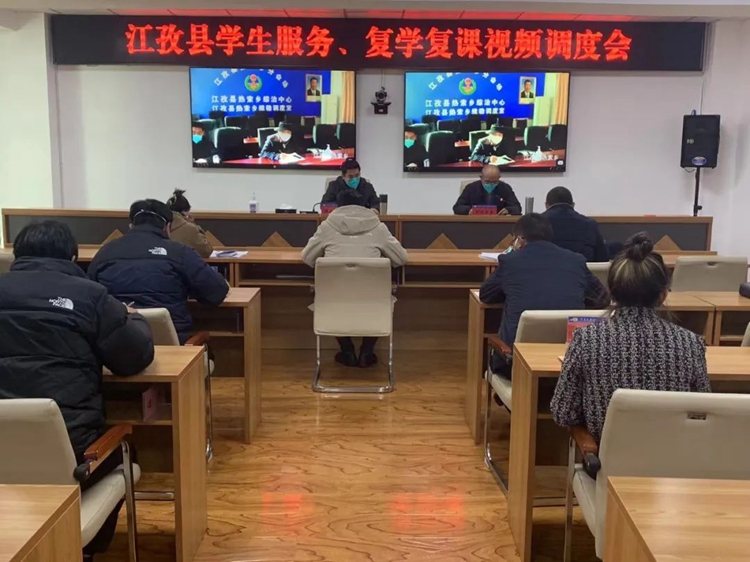 圖為日喀則市江孜縣復(fù)學(xué)復(fù)課視頻調(diào)度會現(xiàn)場
