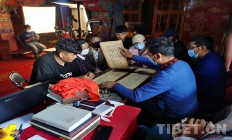 圖為2021年,西藏民族大學(xué)實(shí)習(xí)生在布達(dá)拉宮學(xué)習(xí)古籍文獻(xiàn)知識(shí)