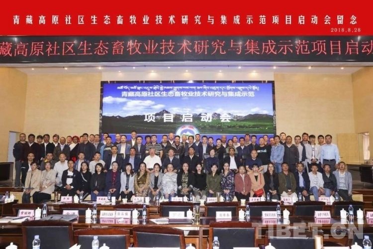 圖為2018年8月“青藏高原社區(qū)生態(tài)畜牧業(yè)技術(shù)研究與集成示范”項目啟動會的會議合影。該項目是西藏科研團隊承擔(dān)的科技部重點研發(fā)項目
