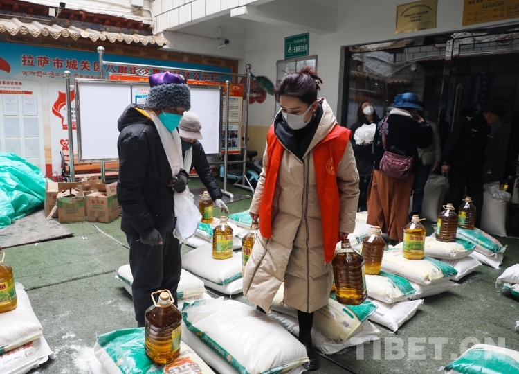 中國(guó)西藏網(wǎng)訊 近日,在西藏自治區(qū)拉薩市城關(guān)區(qū)八廓街道魯固社區(qū)居委會(huì)的院子里,不時(shí)傳來陣陣歡聲笑語(yǔ),在院子的正中間,一袋袋大米、面粉,一桶桶食用油碼放整齊。