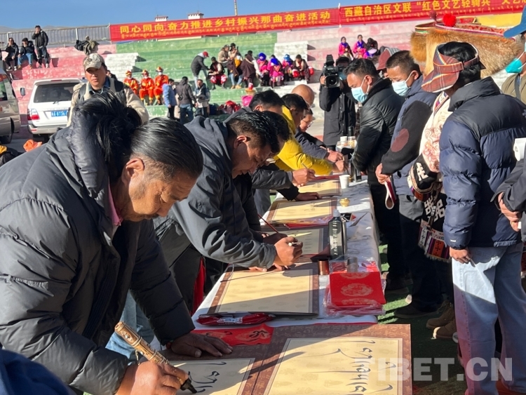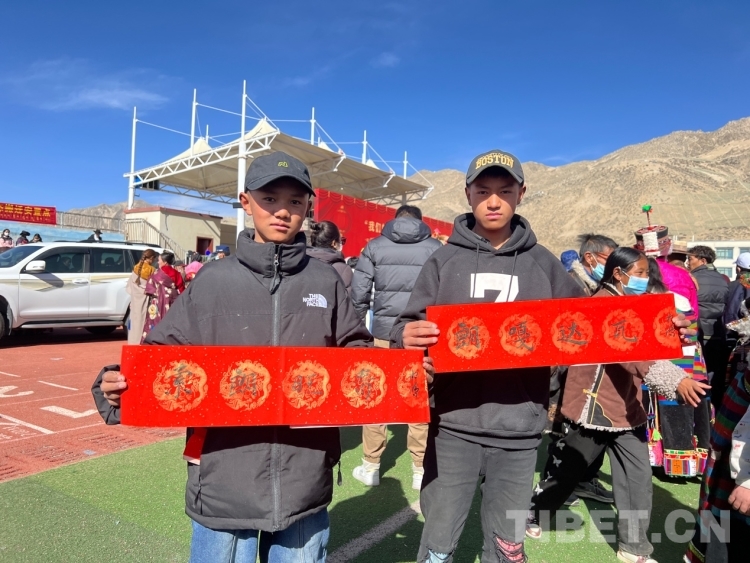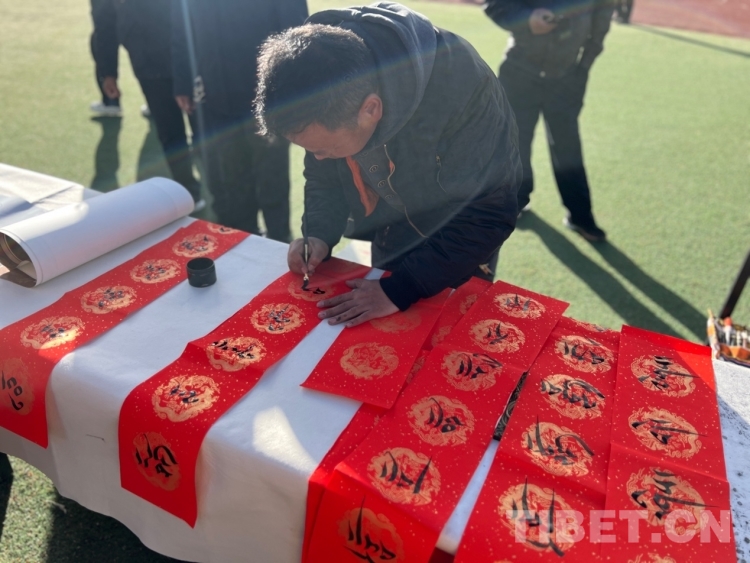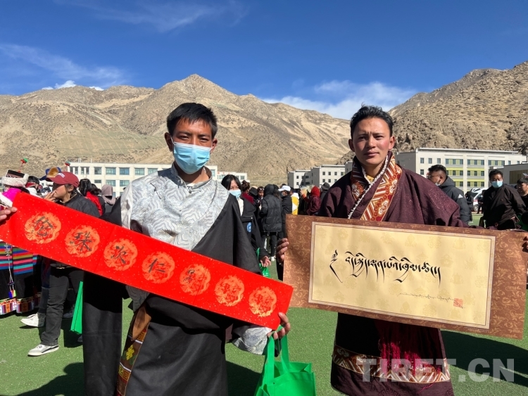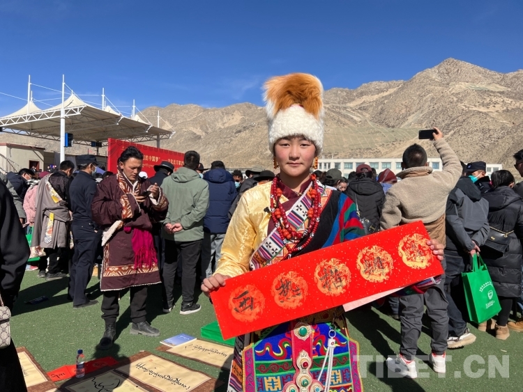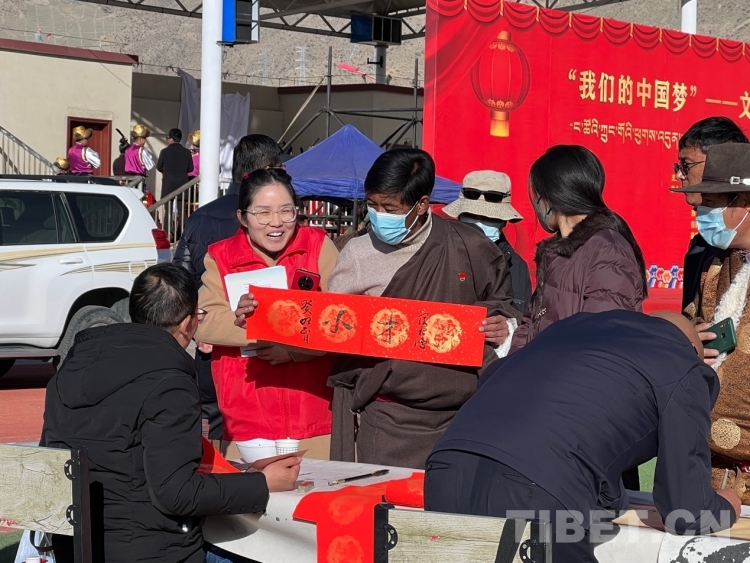 中國西藏網(wǎng)訊 2月16日,西藏自治區(qū)文聯(lián)主辦的“我們的中國夢(mèng)”——文化進(jìn)萬家活動(dòng)在極高海拔生態(tài)搬遷安置點(diǎn)開展。在送“書法”現(xiàn)場(chǎng),由西藏書法協(xié)會(huì)和山南市11位書法家為當(dāng)?shù)厝罕娝腿?00多張?jiān)⒁饷篮玫男履曜8:腿罕娖谕男履曜T傅?。活?dòng)現(xiàn)場(chǎng)群眾絡(luò)繹不絕,大家心滿意足地拿著書法家為自己贈(zèng)送的精美“禮品”。一旁書法家們忙碌地為群眾書寫祝詞,另一旁群眾們晾曬著他們得到的書法作品,一時(shí)間現(xiàn)場(chǎng)成了“書法展”,時(shí)不時(shí)地有人前來參觀欣賞。(中國西藏網(wǎng) 記者/德吉卓瑪)