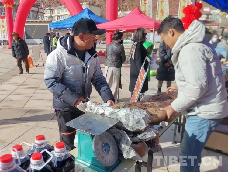 今年的年貨節(jié)除了大家熟悉的高原蜂蜜、索多西辣椒醬、鹽井葡萄酒,藏香豬肉也成了群眾們最青睞的年貨。來(lái)自徐中鄉(xiāng)的群眾澤仁曲措說(shuō):“今年的年貨節(jié)物品豐富,花樣繁多,我們一家人都來(lái)買年貨,心里特別高興。”
