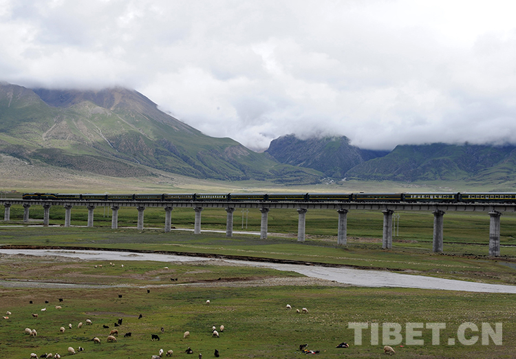 這是一“天路”列車正奔馳在藏北高原的高架橋上(唐召明2013年7月24日攝)