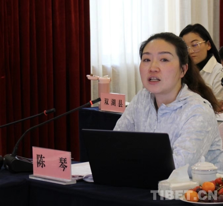 圖為中央廣播電視總臺駐西藏記者站黨委副書記、副召集人陳琴介紹融媒體相關(guān)情況