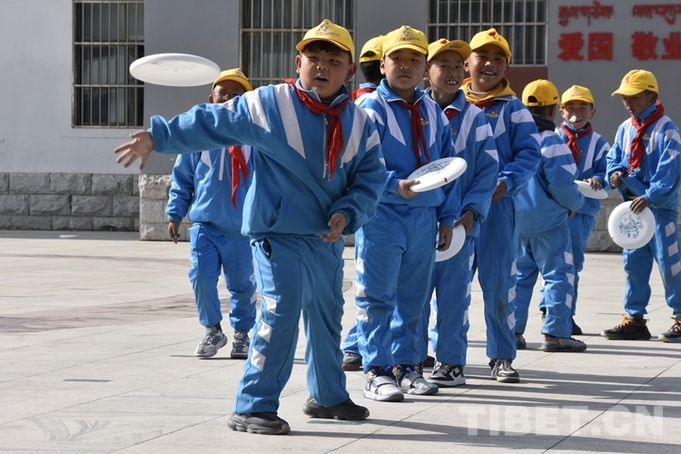 圖為“飛”揚童真 盤”活校園活動現(xiàn)場 攝影:次旦拉姆
