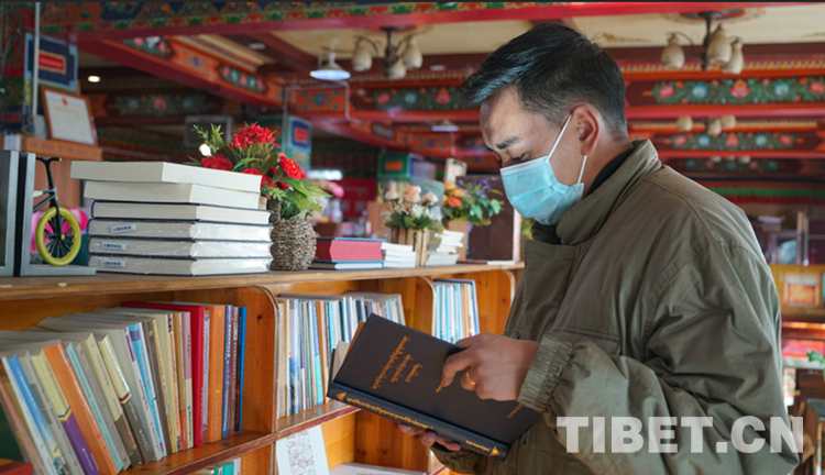 圖為西藏自治區(qū)拉薩市五明書(shū)店內(nèi)正在閱讀藏文書(shū)籍的讀者 攝影:趙振宇