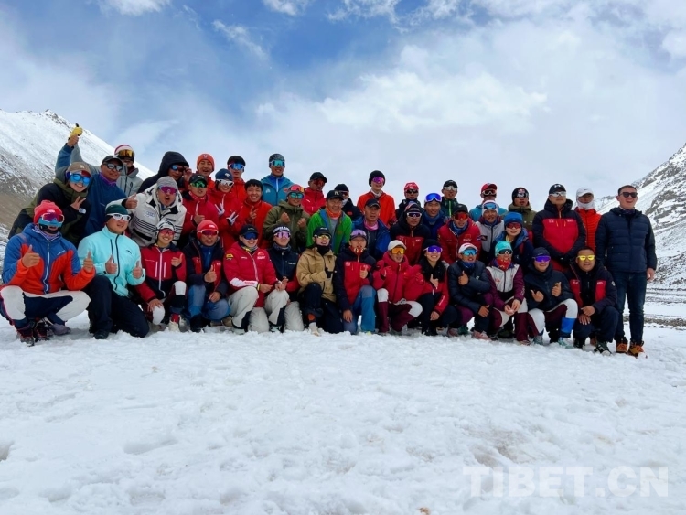 圖為參加滑雪運(yùn)動的教練和運(yùn)動員合影留念 攝影:德吉卓瑪