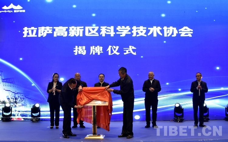 圖為進行拉薩高新區(qū)科學技術(shù)協(xié)會揭牌儀式