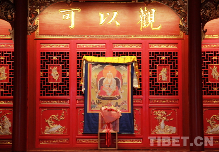拉薩市城關區(qū)娘熱民間藝術團成立于20世紀70年代,1999年被正式命名為“拉薩市城關區(qū)娘熱民間藝術團”。40多年來,藝術團以繼承和發(fā)展藏戲為己任,常年活躍在基層演出,深受歡迎。圖為拉薩市城關區(qū)娘熱民間藝術團演出時舞臺上供奉的湯東杰布唐卡,湯東杰布是藏族民間傳說中創(chuàng)建藏戲的戲神和修建橋梁的工匠“祖師”攝影:劉莉