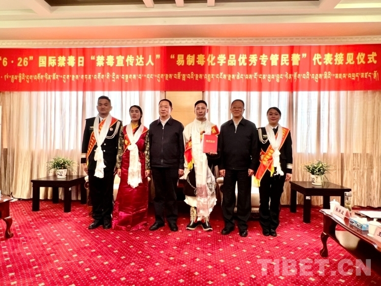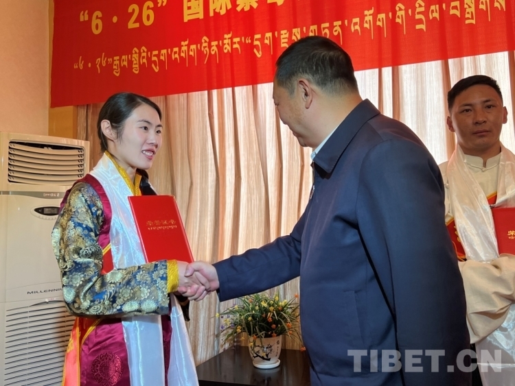 圖為相關(guān)領(lǐng)導(dǎo)為西藏禁毒達(dá)人頒發(fā)榮譽(yù)證書(shū) 攝影:德吉卓瑪