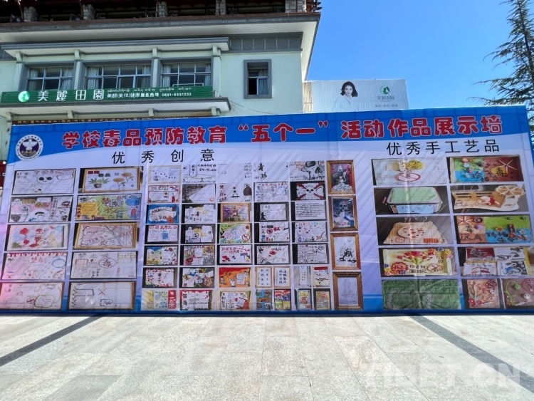 圖為校園毒品預(yù)防教育“五個(gè)一”活動(dòng)作品展示墻 攝影:德吉卓瑪