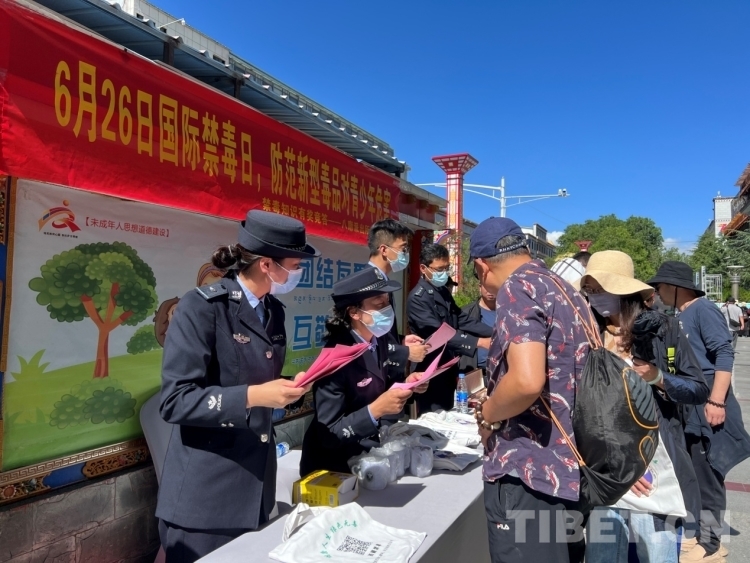 中國(guó)西藏網(wǎng)訊 6月26日,在第36個(gè)國(guó)際禁毒日到來(lái)之際,西藏自治區(qū)禁毒辦聯(lián)合拉薩市禁毒辦在拉薩市宇拓路、迎賓館開(kāi)展“綠色無(wú)毒西藏、你我共同守護(hù)”主題的宣傳活動(dòng)。