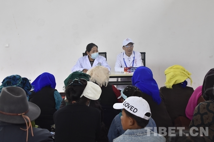 圖為7月8日,活動(dòng)現(xiàn)場(chǎng)開展了骨關(guān)節(jié)炎防治健康知識(shí)講座,鄉(xiāng)政府還安排了一名翻譯 攝影:次旦拉姆