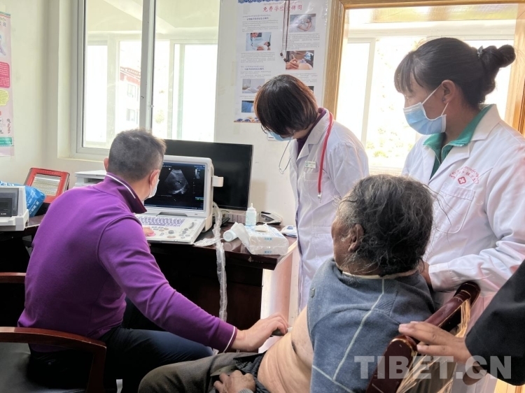 “彩超呢?”北京上地醫(yī)院院長(zhǎng)張宇在衛(wèi)生院工作人員的帶領(lǐng)下來(lái)到衛(wèi)生院二樓為75歲的桑旦江措老人進(jìn)行胸部彩超檢查,“霍主任(中國(guó)中醫(yī)科學(xué)院望京醫(yī)院心內(nèi)科主任)懷疑他有心衰,患者不能平臥睡覺(jué)、走路氣喘、雙腿腫脹,所以我想通過(guò)超聲印證一下,昨天我們也篩查了一些有心衰跡象的群眾,平時(shí)大家覺(jué)得氣喘是小問(wèn)題,忍忍就好了,實(shí)際上它還是很嚴(yán)重的,要及時(shí)治療?!睆堘t(yī)生告訴記者,“藏族群眾對(duì)骨科和胃腸道的關(guān)注度更高,但是心臟、血管、糖尿病等不會(huì)立馬表現(xiàn)出來(lái)的慢性病不太重視,這樣往往會(huì)錯(cuò)過(guò)最佳的治療時(shí)間。所以我們應(yīng)該通過(guò)講座和培訓(xùn),一方面要增強(qiáng)群眾的健康意識(shí),另一方面也要培養(yǎng)當(dāng)?shù)赜玫蒙?、留得住的技術(shù)型人才?!?/p>