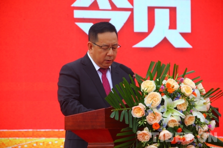 圖為墨竹工卡縣委書記沈鵬里致辭 攝影:旦曲