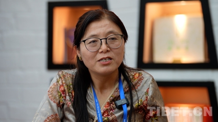 圖為擁措教授在第七屆北京國際藏學(xué)研討會上接受采訪 攝影:陳浩力