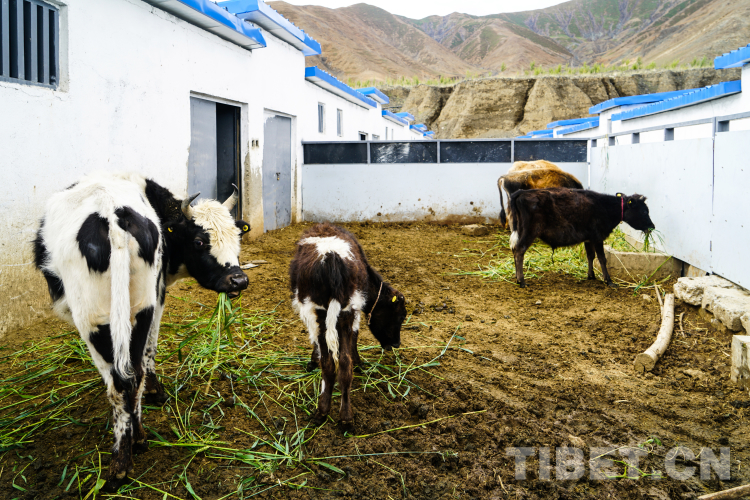 “2022年我們爭(zhēng)取到了280萬援藏資金,打造了這個(gè)‘土雜?!侍蕴?,我們提供場(chǎng)所,讓老百姓把家里的‘土雜?!械竭@里養(yǎng),并且派農(nóng)牧業(yè)專家不定期前來幫助育肥,等到達(dá)出欄標(biāo)準(zhǔn)后,在老百姓同意的情況下幫助其售賣?!卑驮l(xiāng)農(nóng)牧綜合服務(wù)中心負(fù)責(zé)人扎旺說?!袄习傩瞻鸭依锏摹岭s牛’集中到這里后,家中就可以養(yǎng)更好的娟姍奶牛,娟姍奶牛產(chǎn)的奶特別適合做酥油和蛋糕,‘土雜?!a(chǎn)的奶14斤才可以做1斤酥油,而娟姍奶牛產(chǎn)的奶僅需要12斤。”